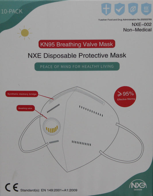 Respirators NXE002 KN95 Mask w/Breathing Valve - 10pk