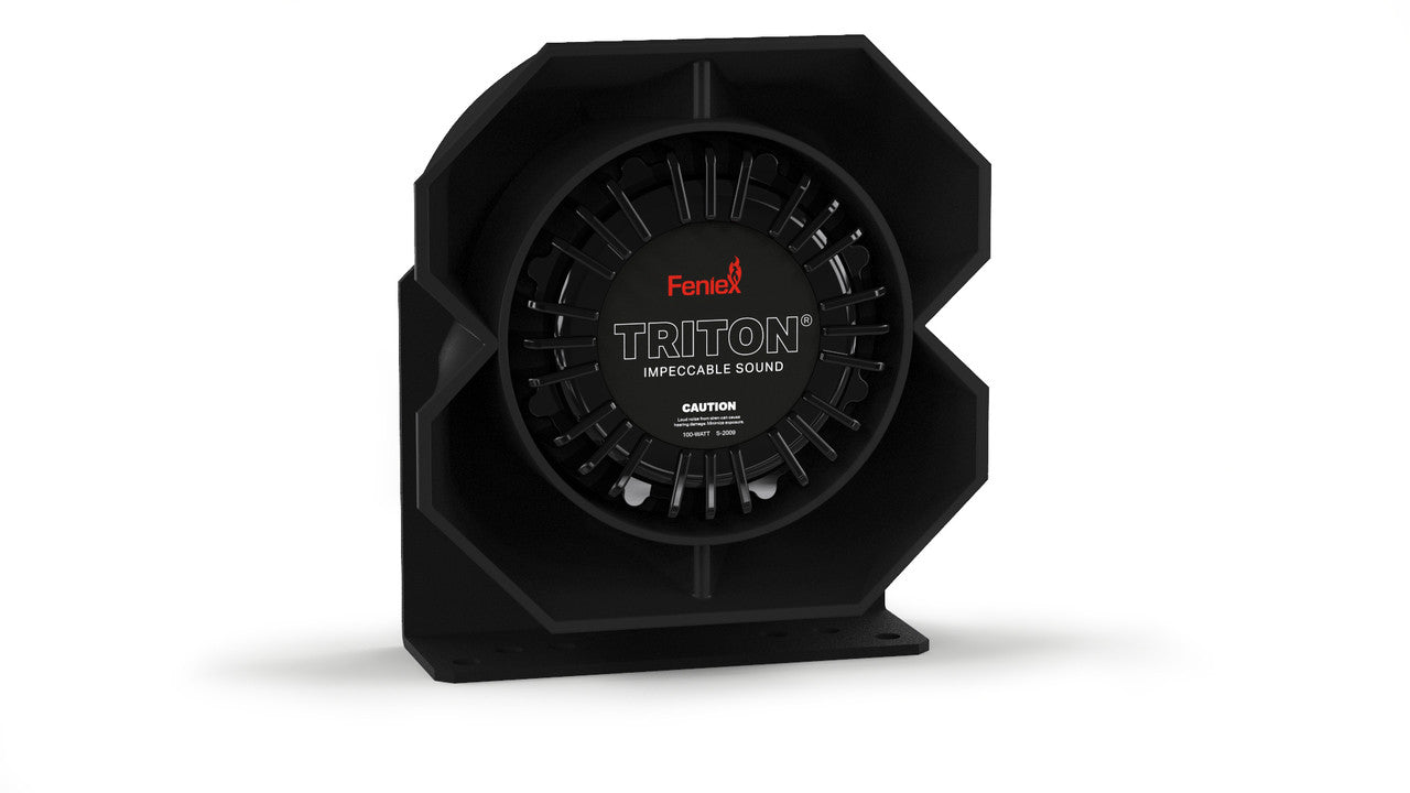 The Feniex Triton 100W Speaker: compact to fit stealthily in even the smallest spaces and INCREDIBLY loud. With 85 degree sound dispersion and a 100 watt power rating this speaker is sure to do the job. The Triton works great with any siren and is sure to impress!