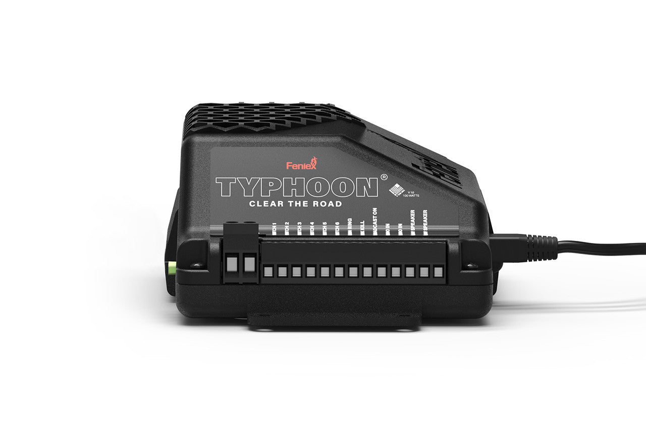 Features 6 programmable backlit buttons, integrated PA/microphone with flexible mounting options, and 23 police and fire tones with push-button selection. Ride the wave of the Typhoon Console Siren, an integrated, compact 100w siren/controller with ultra-clear sound and reliable convenience. Engineered for undercover and volunteer applications,