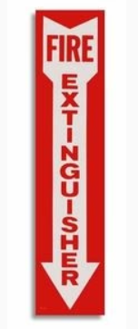 Durable 4" x 18" tall Fire Extinguisher Arrow Signs are silk screened using fade resistant UV inks on adhesive vinyl and laminated.