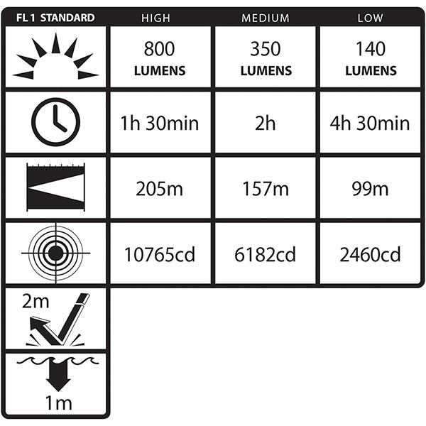 - Momentary or constant-on plus 3 brightness levels & strobe