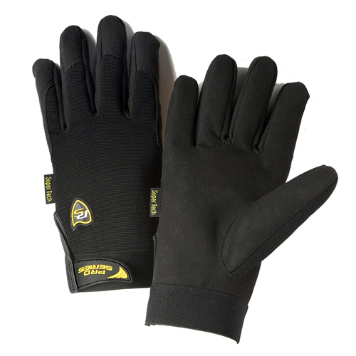 SUPER TECH® features TPR hook and loop wrist, synthetic leather palm, synthetic leather fourchettes, 4-way stretch spandex back.