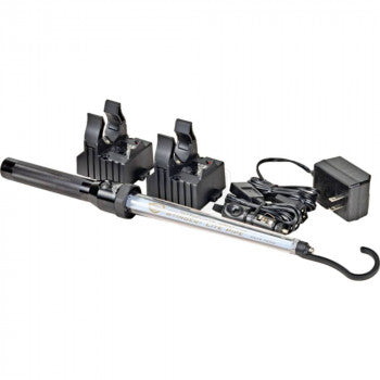 Pipe Work Light@ Illuminates a Large Work Area Continuously for Over 3 Hours@ Multi-function Push Button Switch. Includes LED Indicator and Mountable Snap-In Charger plus home and car cords. Battery not included.
