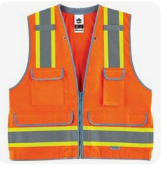 High visibility surveyor vest with 2" reflective tape that meets ANSI Class 2 standards to ensure worker is completely visible.